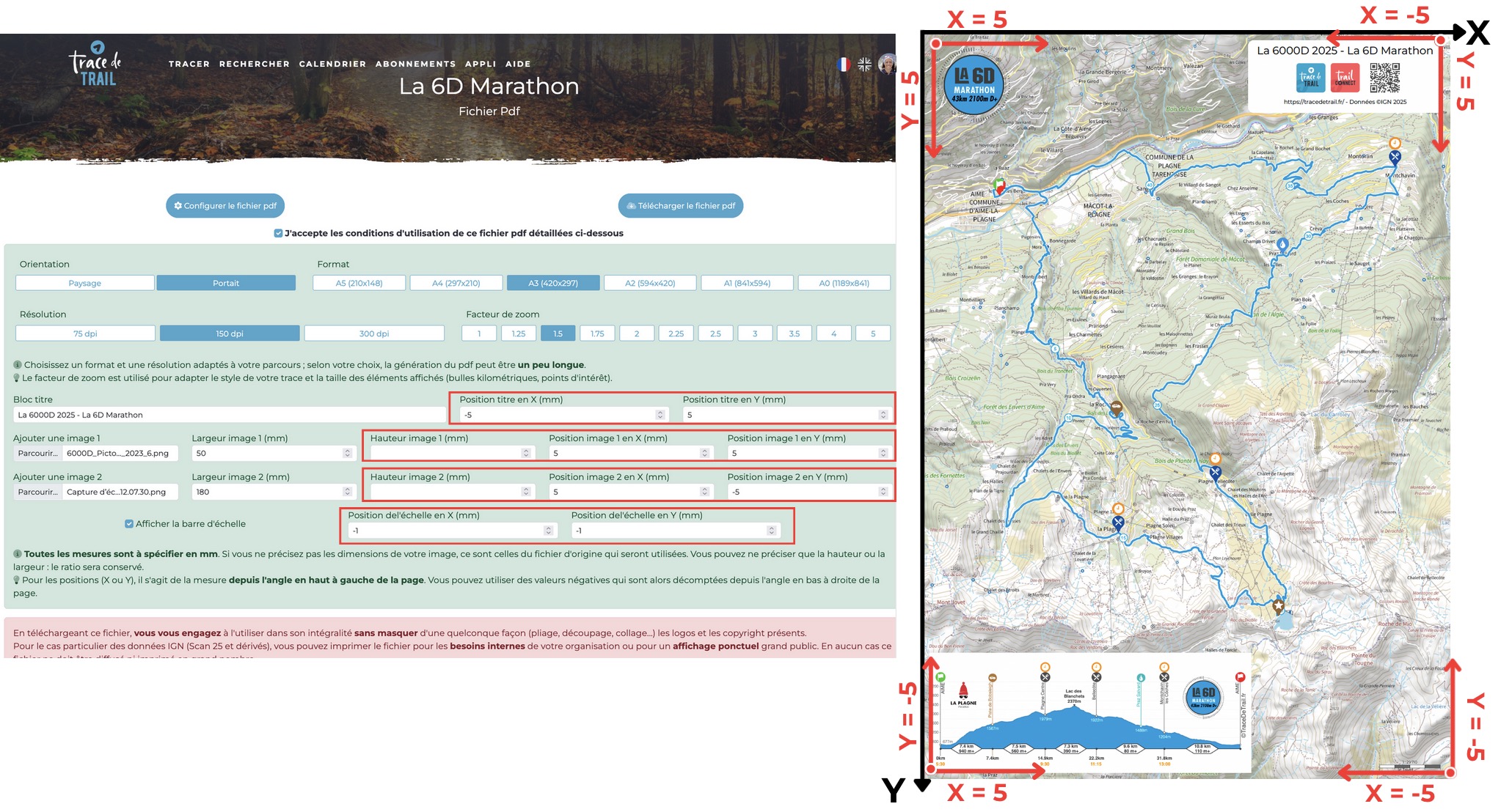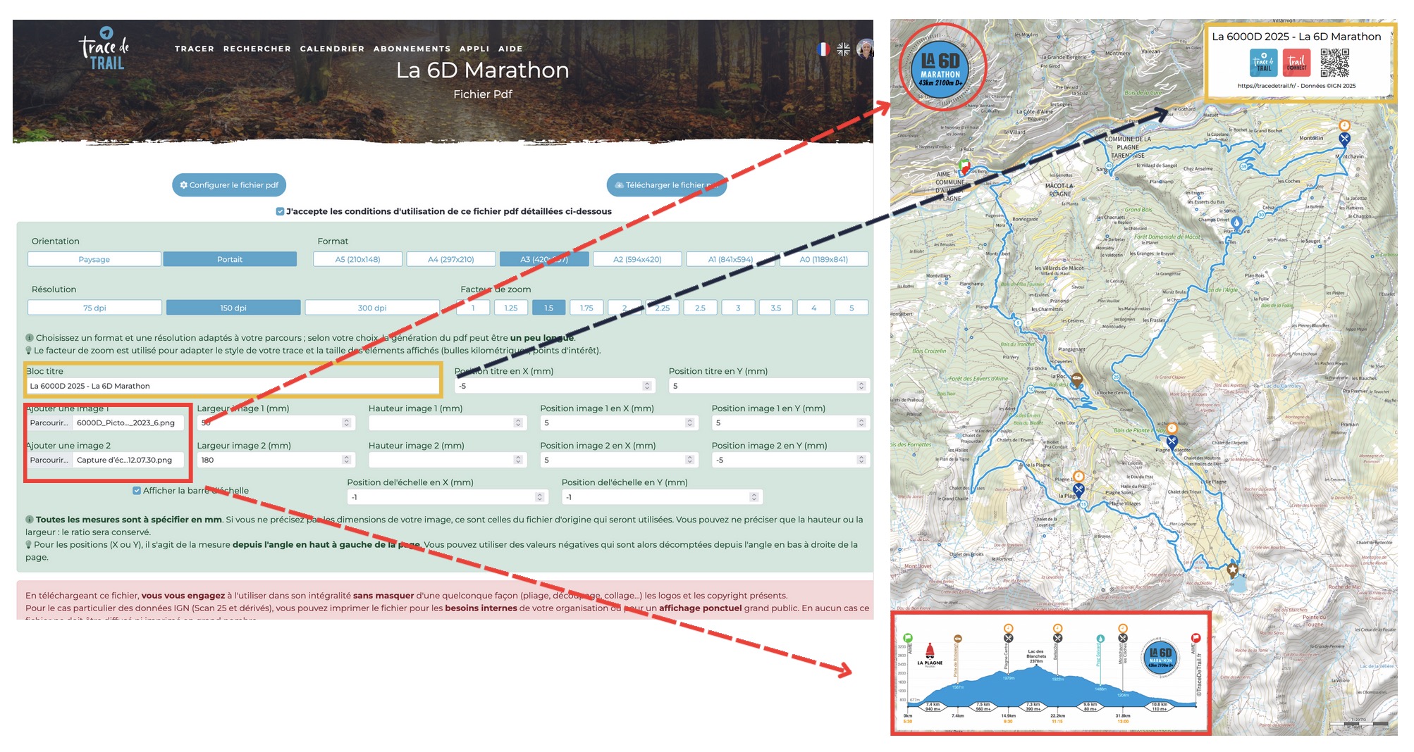 Images : upload up to 2 images (in the example below: race logo + personalized elevation profile). Choose :